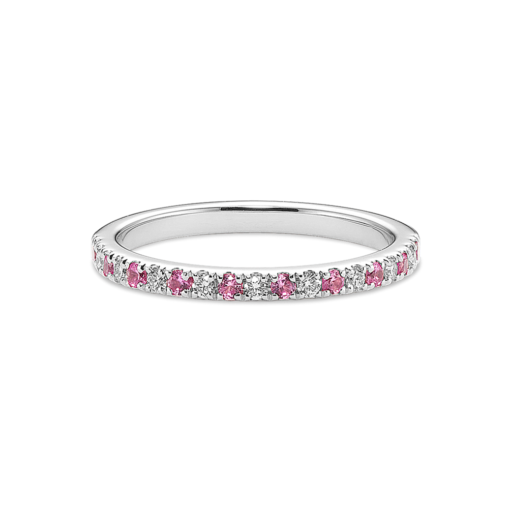 A colorful array of natural sapphires lines the halo and wedding band of this vibrant wedding set. Set in warm 14-karat white gold, all the gemstones are hand matched for consistent color and beauty. Simply add the oval center stone of your dreams to make it complete. For more information on selecting your center stone, Live Chat or call an online customer service representative at 1-866-467-4263, or visit one of our store locations.