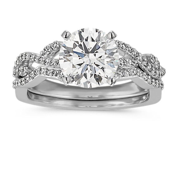 • Round Diamond Vine Wedding Set in 14k White Gold