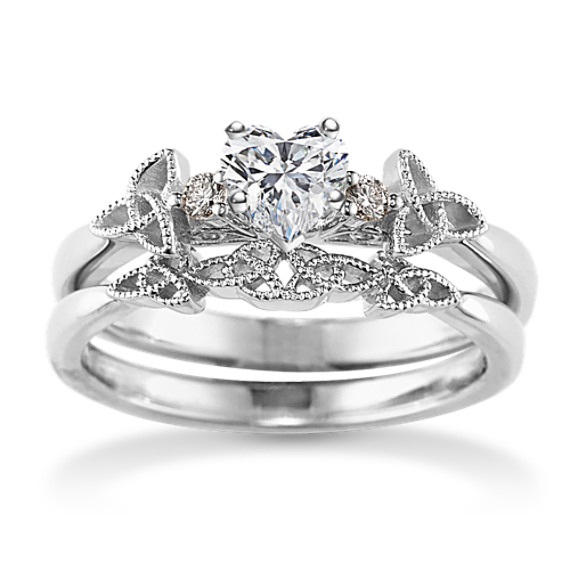 Trinity Knot Wedding Set with Heart Natural Diamond