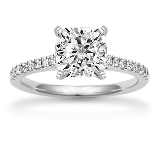 Add shimmer to the center stone of your dreams with this natural diamond pavé engagement ring. Crafted in bright 14-karat white gold, it features a cathedral design and a classic look. For more information on selecting your center stone, Live Chat online, call a customer service representative at 1-866-467-4263, or visit one of our store locations.