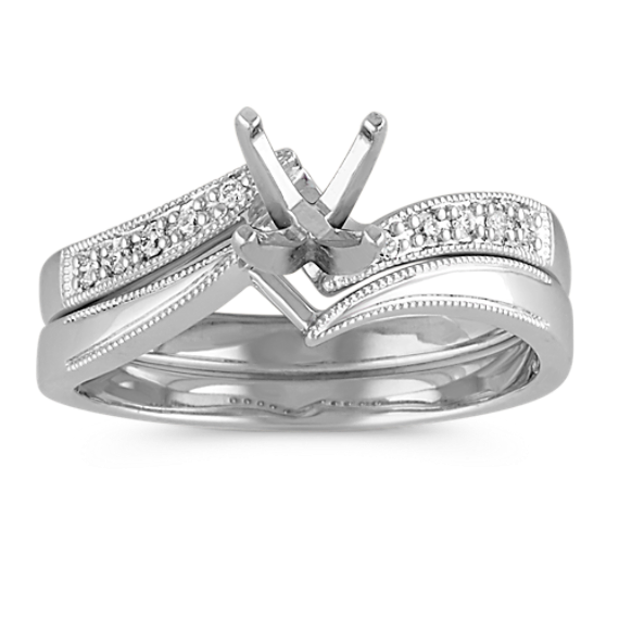 Zigzag Swirl Diamond Wedding Set with Pave Setting