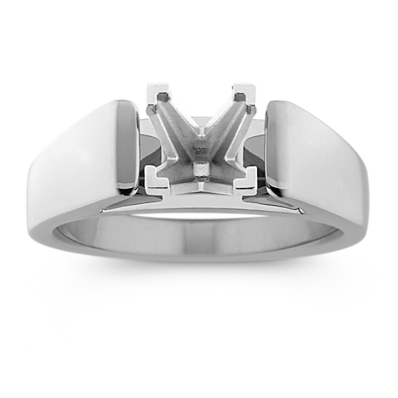 Chevron Head Cathedral Solitaire 14k White Gold Engagement Ring