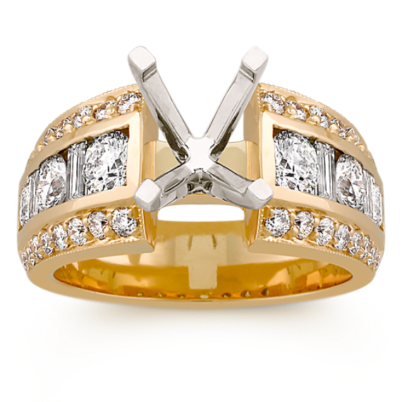 Round and Baguette Diamond Engagement Ring in Yellow Gold