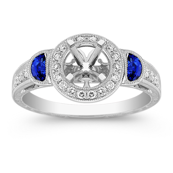Half Moon Shaped Sapphire & Diamond Engagement Ring