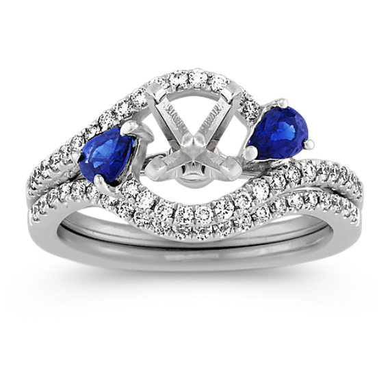 Swirl Pear-Shaped Sapphire and Round Diamond Wedding Set