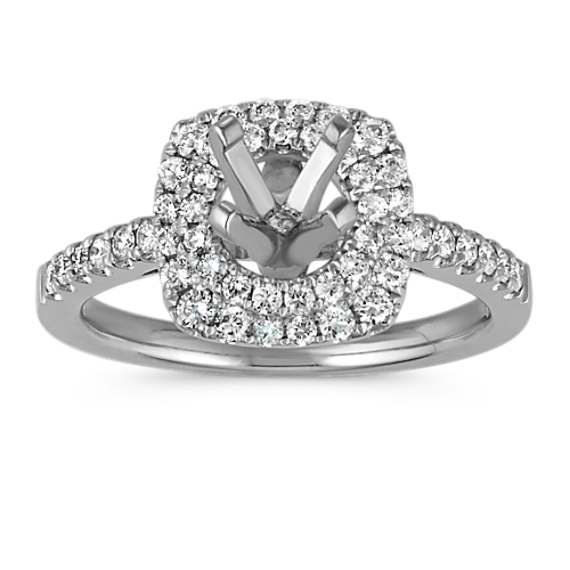 Double Halo Diamond Platinum Engagement Ring with Pave Setting