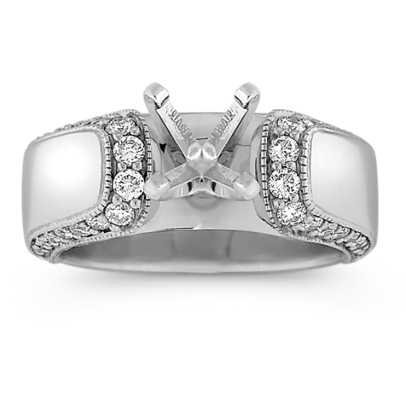 Cathedral Round Diamond Engagement Ring with Pave-Setting