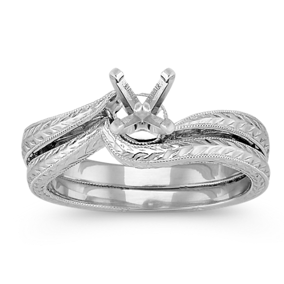 Engraved Swirl White Gold Wedding Set