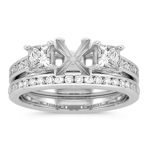 Madison Three-Stone Princess Cut and Round Diamond Cathedral Wedding Set