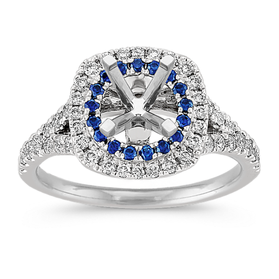 Diamond and Sapphire Engagement Ring with Pave Setting