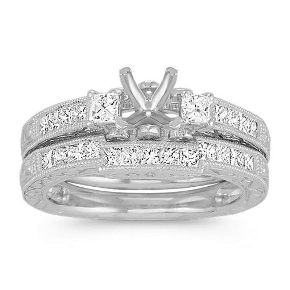 Vintage Princess Cut Diamond Platinum Wedding Set with Channel-Setting
