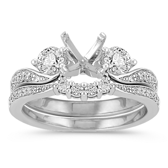 Three-Stone Swirl Diamond Wedding Set