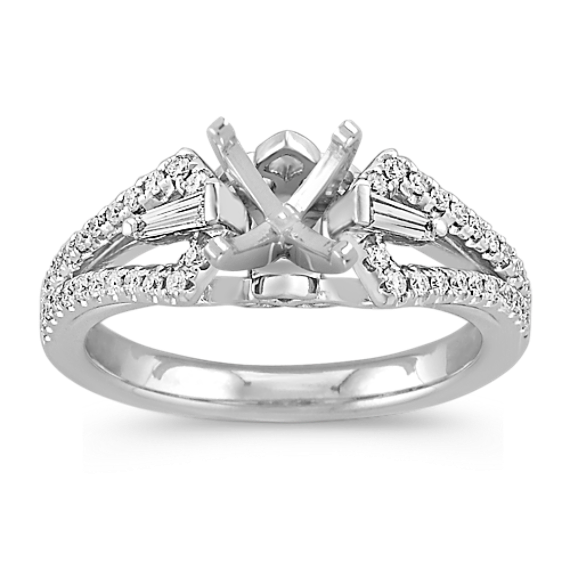 Baguette and Round Diamond Engagement Ring with Pave Setting