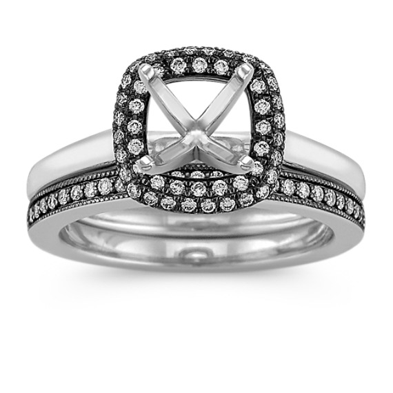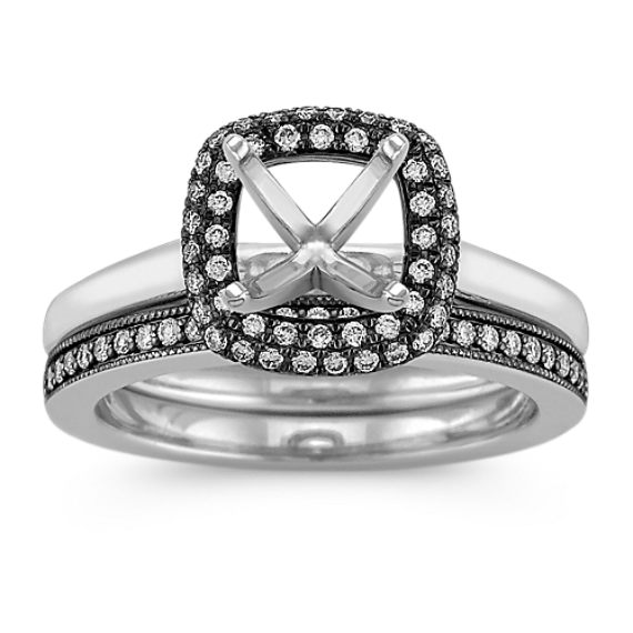 Halo Diamond Wedding Set with Black Rhodium and Pave Setting