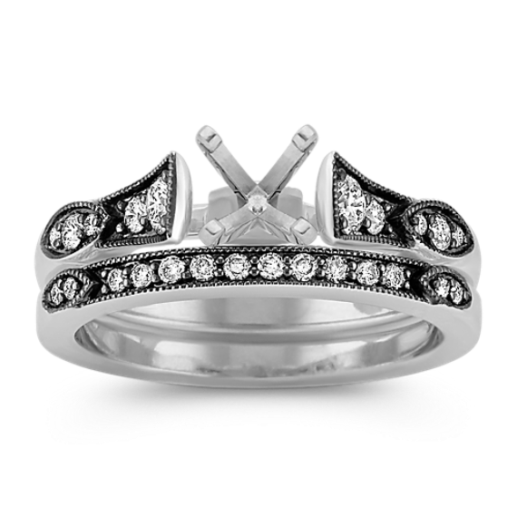 Vintage Cathedral Diamond Wedding Set with Black Rhodium