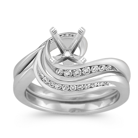 Diamond Swirl Wedding Set in Platinum with Channel-Setting