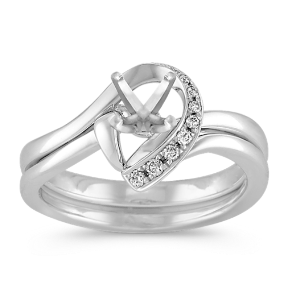 Half Heart Swirl Diamond Wedding Set with Pave Setting in White Gold