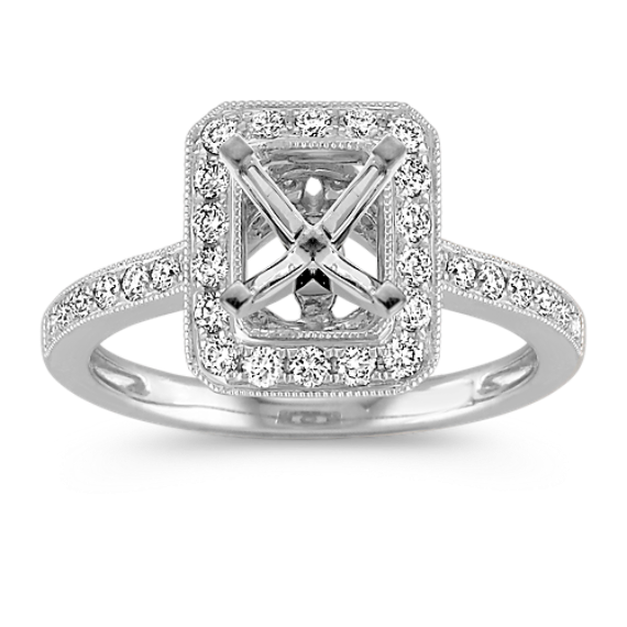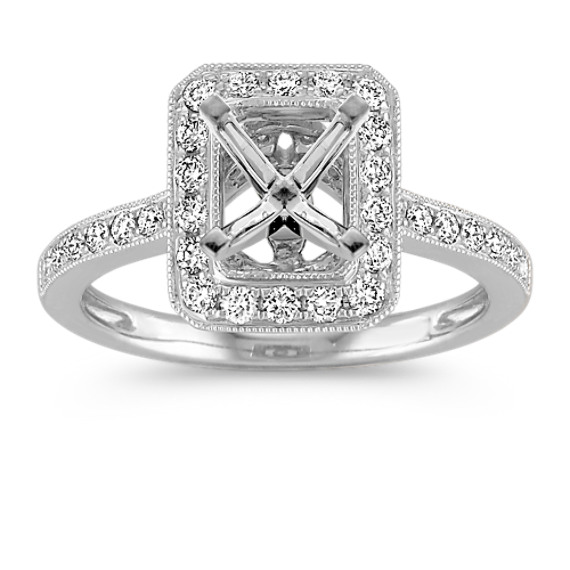 Vintage Emerald Halo Diamond Engagement Ring with Pave-Setting