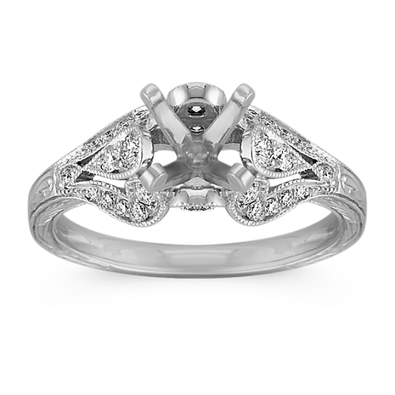 Vintage Cathedral Diamond Engagement Ring with Milgrain and Engraving