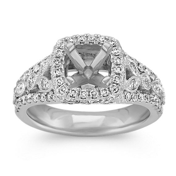 Halo Engagement Ring with Round Pave and Bezel-Set Diamonds