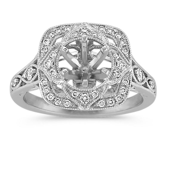 Vintage Halo Engagement Ring with Pave-Set Round Diamonds