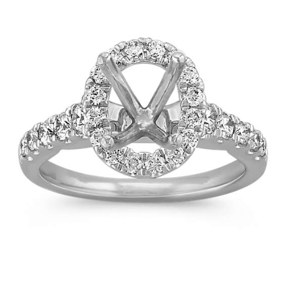 Oval Halo Engagement Ring with Round Diamond Accents in Platinum
