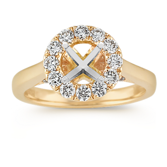 Round Diamond Halo Pave-Set Engagement Ring in 14k Yellow Gold
