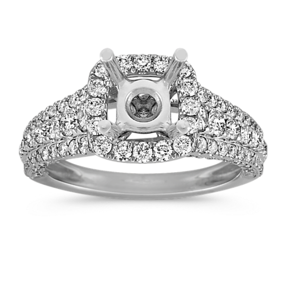 Round Diamond Halo Engagement Ring with Pave-Setting