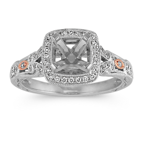 Pave-Set Round Diamond Vintage Halo Engagement Ring