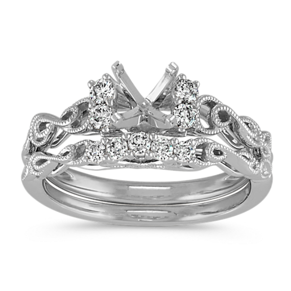 Vintage Round Diamond Wedding Set with Milgrain Detailing