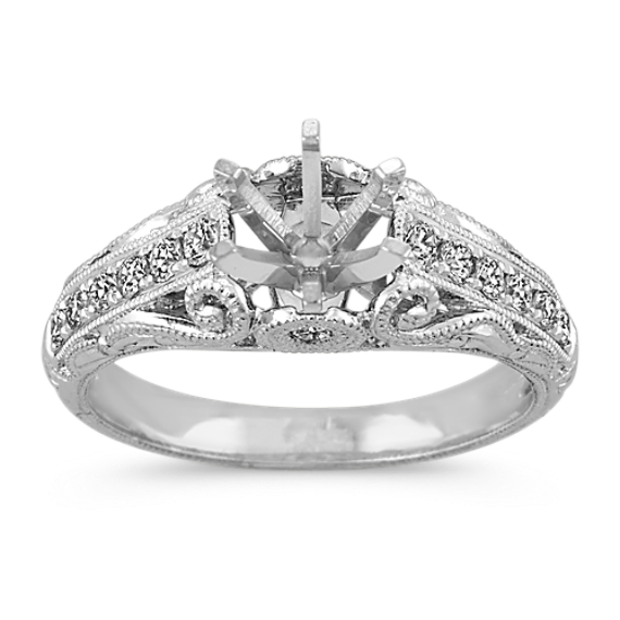 Round Diamond Vintage Engraved Platinum Engagement Ring
