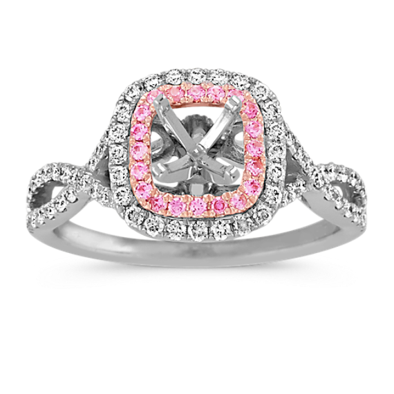 Cushion Cut Halo Round Diamond and Pink Sapphire Infinity Engagement Ring