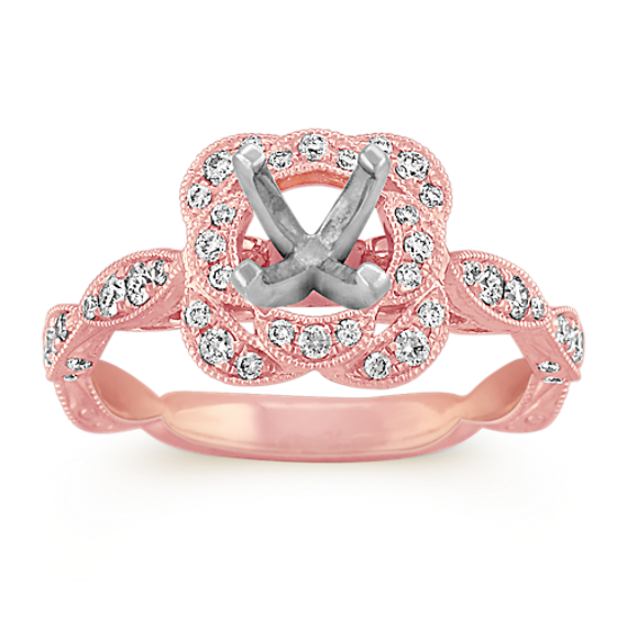 Round Diamond Vintage Halo Engagement Ring in 14k Rose Gold