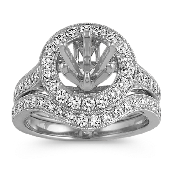 Round Diamond Halo Vintage Wedding Set with Pave Setting