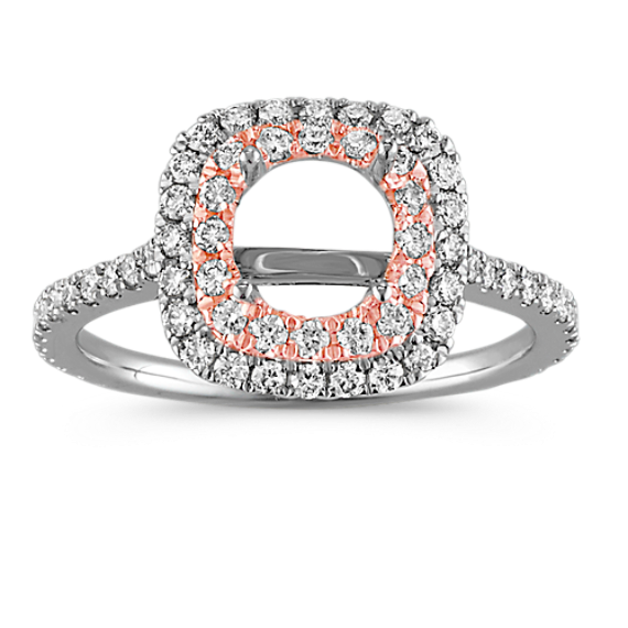 Double Halo Diamond Engagement Ring in 14k Two-Tone Gold