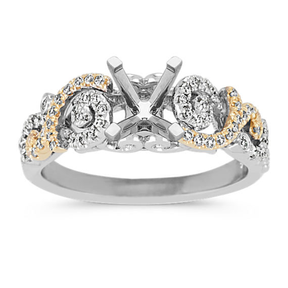14k Two-Tone Gold Round Diamond Swirl Engagement Ring