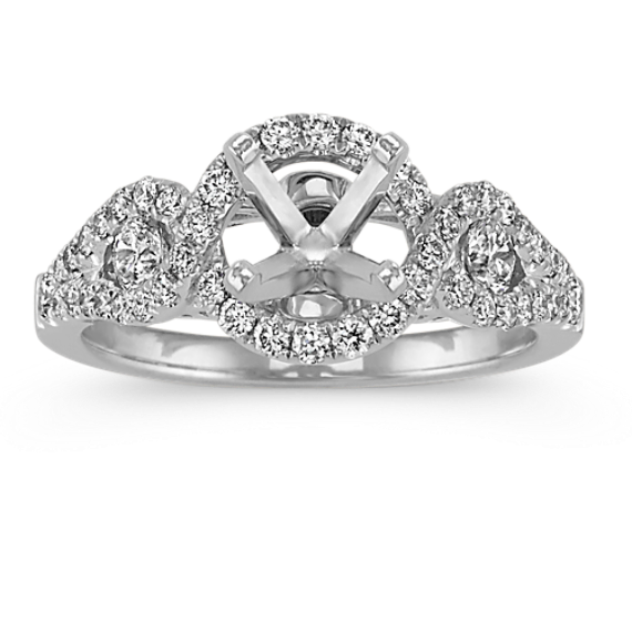 Round Swirl Halo Engagement Ring in 14k White Gold