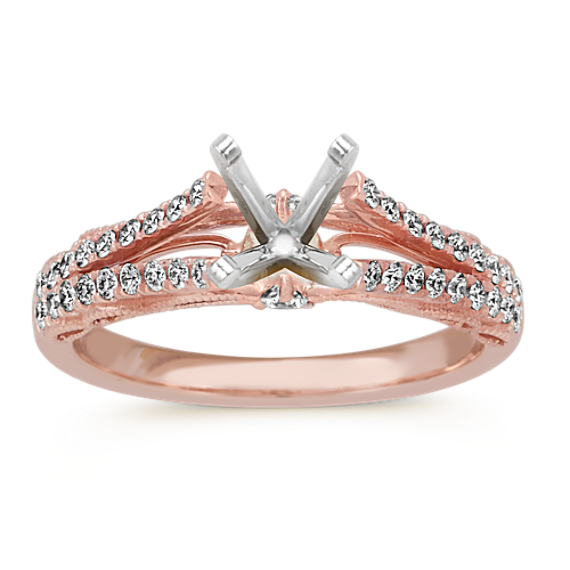 Vintage Round Diamond Split Shank Engagement Ring in 14k Rose Gold