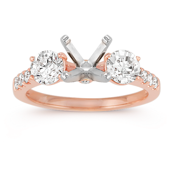 Cathedral Three-Stone Round Diamond Engagement Ring in 14k Rose Gold