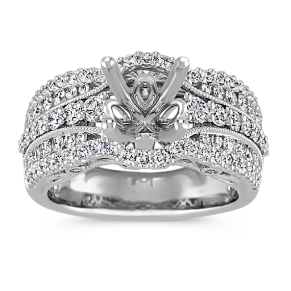 Round Diamond Vintage Engagement Ring in 14k White Gold