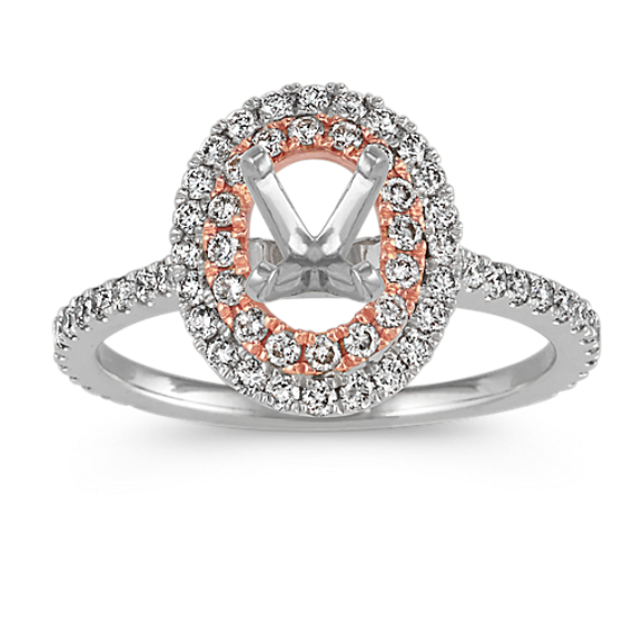 Oval Double Halo Engagement Ring in 14k Two-Tone Gold