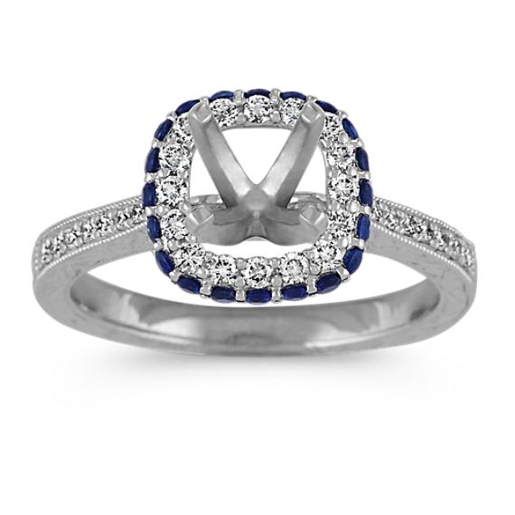 Vintage Halo Diamond and Sapphire Engagement Ring