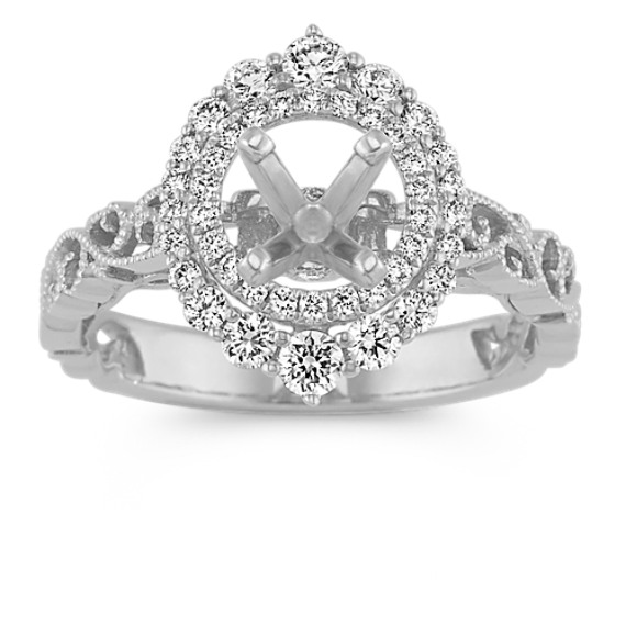 Vintage Halo Engagement Ring in 14k White Gold