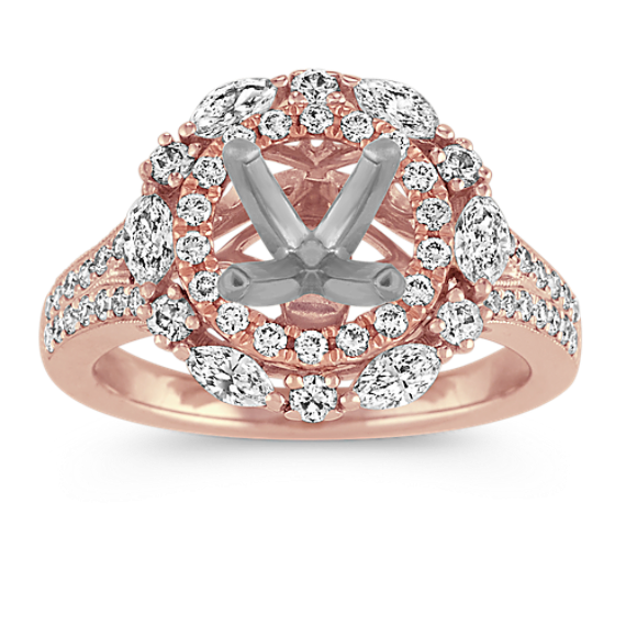 Roma Double-Halo Diamond Engagement Ring in 14k Rose Gold