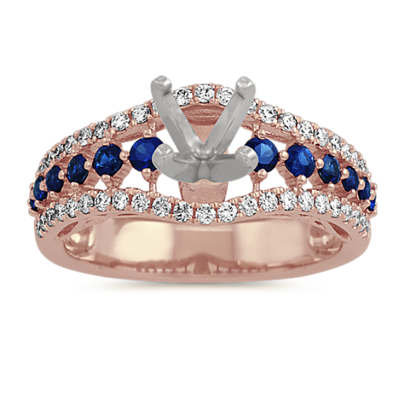 Traditional Blue Sapphire and Diamond Engagement Ring
