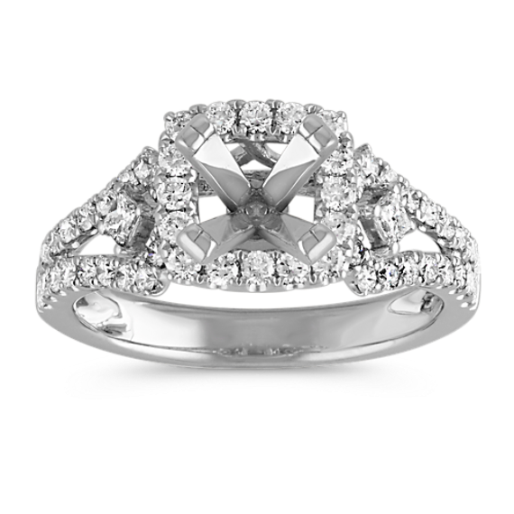 Cushion Halo Engagement Ring with Pave-Set Diamonds