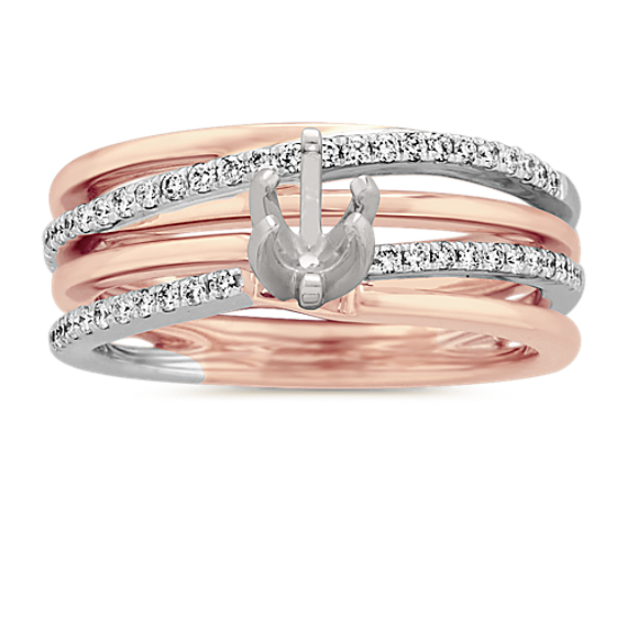 Swirl Diamond Engagement Ring in 14k White and Rose Gold