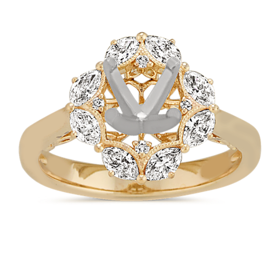 Navette Diamond Halo Engagement Ring with Milgrain Detail