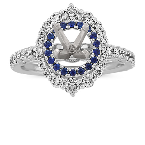 Traditional Blue Sapphire and Diamond Engagement Ring