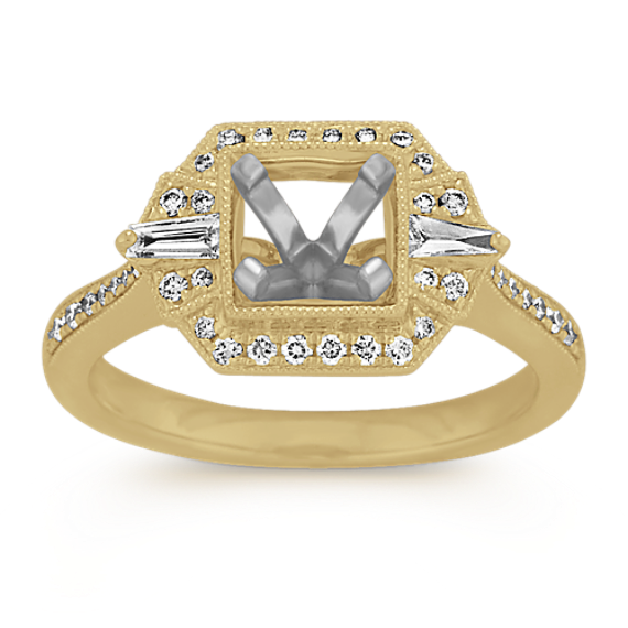 Art Deco Diamond Halo Engagement Ring in 14k Yellow Gold